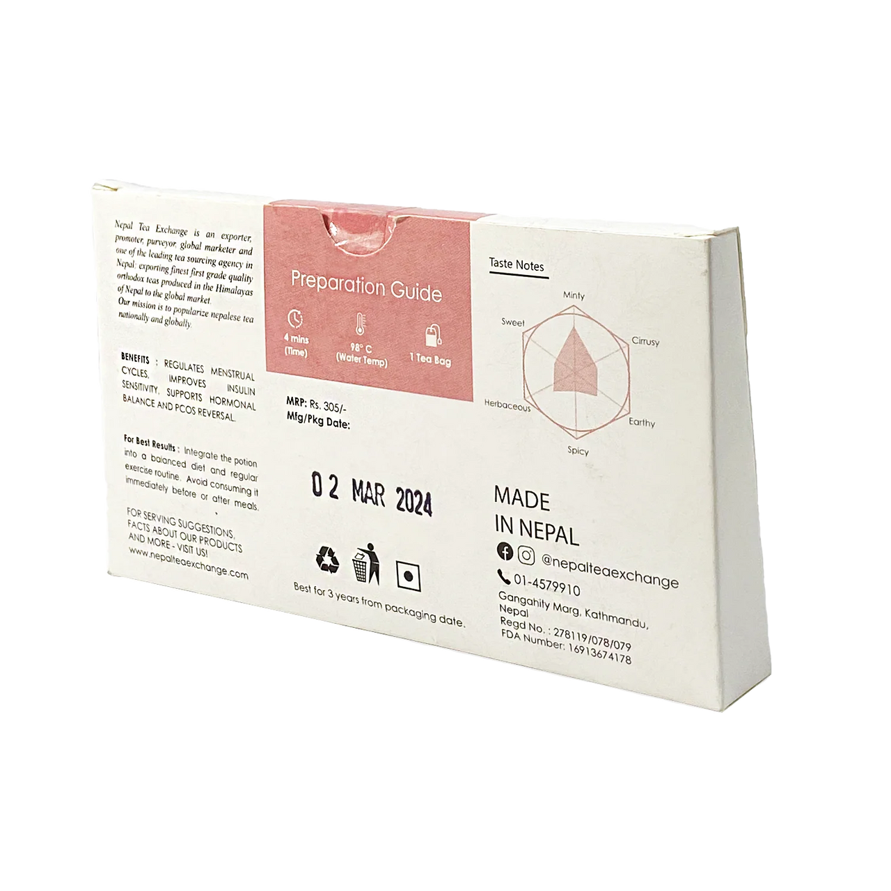 Introducing the Enhanced PCOS Power Potion Tea from Nepal Tea Exchange, an expertly formulated blend tailored to empower women managing Polycystic Ovary Syndrome (PCOS). This advanced tea concoction combines the healing properties of Mentha spicata (Spearmint), Camellia Sinensis, Cinnamomum verum (Cinnamon), and Zingiber officinale (Ginger). Each ingredient is carefully selected for its potential to support hormonal balance, enhance insulin sensitivity, and promote regular menstrual cycles, contributing to an effective PCOS management strategy.